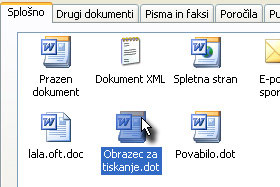 V zavihku Splošno označite prej ustvarjeno predlogo in kliknite na gumb V redu. |