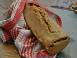 Po približno 45 minutah je naš pirin kruh z mineralno vodo pečen.