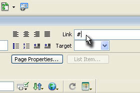 V oknu Properties vpišite v polje Link znak # (glej sliko).