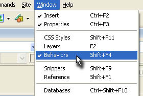 Kliknite zgoraj na Window in izberite Behaviors.