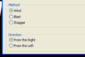 Potrdite na gumb Yes, ko vas vpraša ali naj layer razterizira. Method označite Wind in Direction From the Right. Kliknite na gumb OK. |