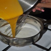 Rumenjakom in mleku dodamo še 100g sladkorja. |