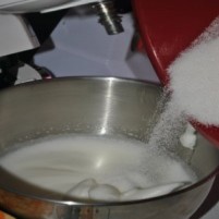 V sneg vsujemo 150g sladkorja. |