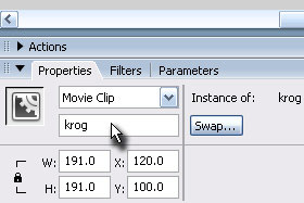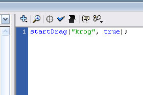 Pritisnite tipko F9 in v polje za pisanje akcijskih skript vpišite: startDrag("krog", true); |