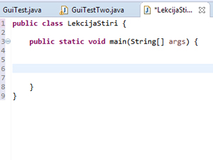 ![]() Najprej ustvarimo novo datoteko in v njej razred in main metodo.