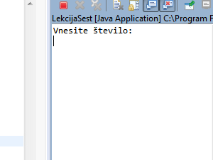 ![]() V main metodi bomo sedaj ustvarili ta stavek, ki bo v konzoli izpisal, da zahtevamo število. |