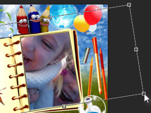 ![]() Sedaj pa prilagodite prilepljeno fotografijo tako, da jo držite z rob in povlečete skupaj ali narazen ter jo obračate okoli svoje osi. Če boste držali tipko Shift, boste to počeli proporcionalno. Potrdite spremembte s tipko Enter. |