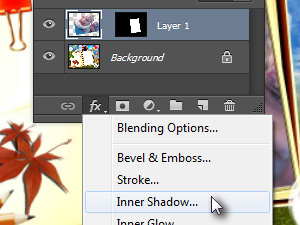 ![]() Sedaj bomo dodali še senco znotraj okvirja, da bo rezultat bolj realističen. Kliknite na ikono za efekte (glej sliko) in izberite Inner Shadow...