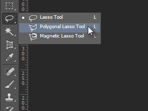 ![]() Izberite orodje Polygonal Lasso Tool. Držite z miško na orodju Lasso Tool (bližnjica je tipka L) toliko časa, dokler se vam ne prikažejo ostala orodja.