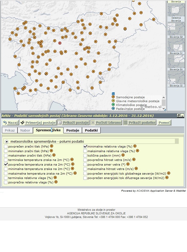 Izberete lahko pregled za Slovenijo ali za posamezne meteorološke postaje.