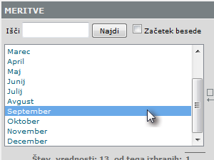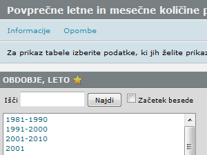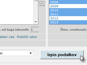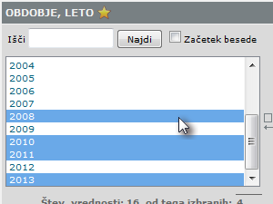 ![]() Izberite leta, ki vas zanimajo. Da izberete več elementov, držite pritisnjeno tipko CTRL in z miško kliknite na posamezna leta. |