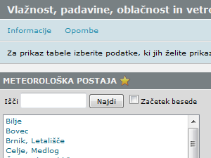 ![]() Poleg temperatur, pa si lahko na podoben način ogledate tudi druge vremenske podatke.