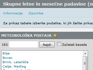 ![]() Na spodnji povezavi pa lahko najdete tudi skupne količine padavin: Skupne letne in mesečne padavine (mm) po meteoroloških postajah