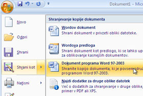 Shranite dokument pod poljubnim imenom. S tem ukazom smo shranili dokument, ki bo združljiv s starejšimi različicami Word. |