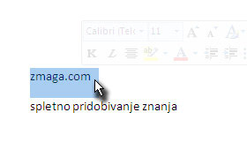Z miško označite tekst in opazili boste, da se vam bo prikazala transparentna orodna vrstica poleg miškinega kazalca.