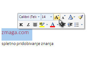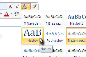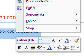 Premaknite miško na to orodno vrstico in se malo poigrajte z oblikovanjem označene besede.