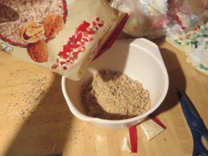 Pripravili bomo četrti nadev, ki bo v večini sestavljen iz mletih orehov. V posodo dodajte 200g mletih orehov. |