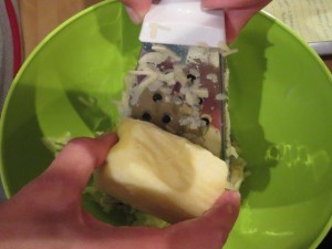 Za pripravo prekmurske gibanice bomo potrebovali štiri različne nadeve. Pripravili bomo prvi nadev z jabolki. Pripravite 500 gramov jabolk, katera najprej olupite in nato naribajte v neko posodo. Lahko jih dodate tudi več, da bo prekmurska gibanica še bolj sočna.