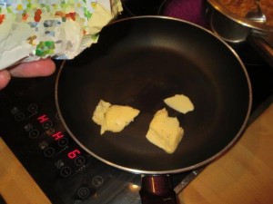 Počakajte, da maslo postane tekoče in odstranite ponev ter izklopite kuhalno ploščo. |