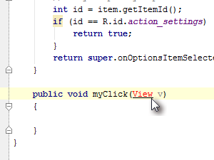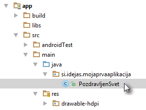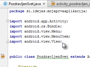 Zato definiramo novo spremenljivko tv, ki je istega tipa kot element s tekstom, torej TextView.