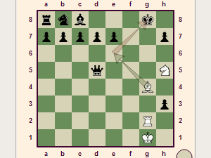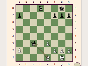 ![]() Kralj nima druge možnosti, kot da poje lovca, saj je izhod na polje d7 blokiran s kraljico.
