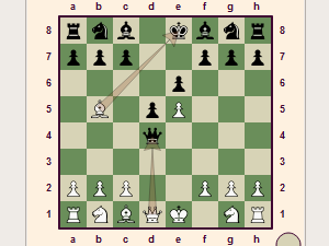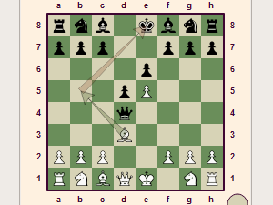 ![]() S tem, ko smo lovca premaknili na polje b5, je črni igralec prisiljen preprečiti šah. Ker smo z odmikom lovca napadli tudi kraljico, ki je nezaščitena, jo lahko v naslednji potezi pojemo in tako dosežemo občutno prednost. |