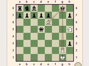 Zato je v primeru dvojnega šaha nasprotnik vedno prisiljen premakniti kralja. In tako v naslednji potezi s trdnjavo na polje g8 sledi neizbežen mat. |