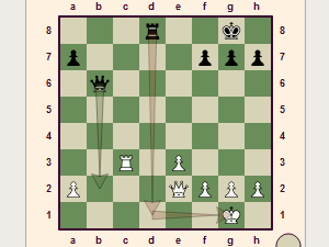 ![]() Vendar pa lahko zaradi taktike odmika tudi v tem primeru črni s kraljico poje trdnjavo. |