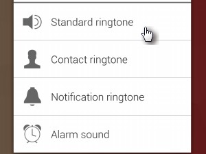 ![]() Izberite možnost Standard ringtone, da melodijo oz. pesem nastavite kot privzeto zvonjenje. Če želite, pa lahko s klikom na Contact ringtone melodijo nastavite kot zvonjenje, ki se bo predvajalo takrat, ko vas bo klical točno določena oseba. |