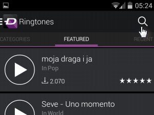 ![]() Aplikacijo odprite. Najprej se bo ponudil meni, kjer izberete Ringtones. |