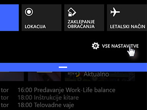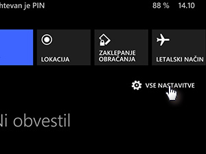 ![]() Povlecite s prstom od zgornjega roba navzdol in izberite Vse nastavitve. Potrebovali boste različico Windows Phone 8.1. |