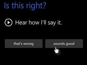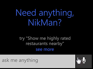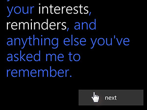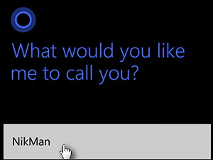 ![]() Ob prvem zagonu vas bo Cortana vprašala za ime, katerega vpišete in potrdite. |