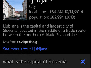 ![]() V mojem primeru sem jo vprašal, katero je glavno mesto Slovenije in dobil tudi odličen odgovor. |