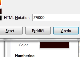 S klikom na gumb Color se nam pojavi še eno okno v katerm v spodnjem desnem kotu vpišemo številko 270000, da dobimo zelo temno vinsko barvo.