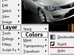 Nato z desnim klikom v selekciji izberemo: Layer -> Colors -> Invert