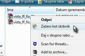 Kliknite z desnim miškinim gumbom na datoteko vista_ff_fix_01 in izberite Zaženi kot skrbnik.