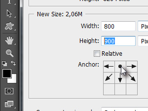 ![]() Pritisnite tipko D in nato tipko X, da nastavite belo barvo za drugo barvo (glej sliko). Potem pa kliknite zgoraj na Image in izberite Canvas Size.. V novem oknu Anchor določite tako kot jaz in nato Height nastavite na 900 ter kliknite na gumb OK. |