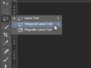 ![]() Izberite orodje Polygonal Lasso Tool. Držite z miško na orodju Lasso Tool (bližnjica je tipka L) toliko časa, dokler se ne prikažejo ostala orodja.