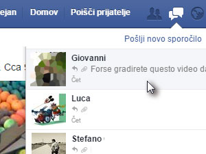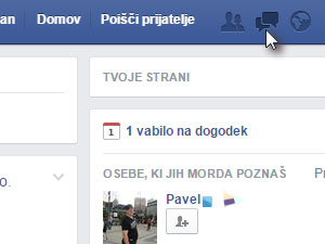 Prijavite se v Facebook in kliknite na ikono za sporočila.