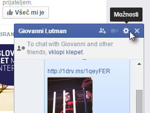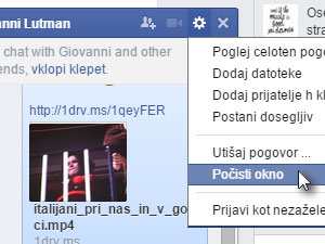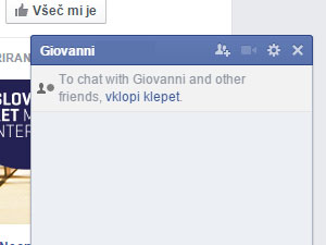 ![]() Nato izberite priajtelja, s katerim ste se pogovarjali. Lahko pa tudi aktivno okno, ki se je pojavilo ob prijateljevem klepetu. |