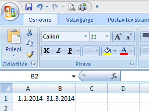 V polje A1 vpišite začetni in v polje A2 končni datum obdobja, ki ga želite izpisati.