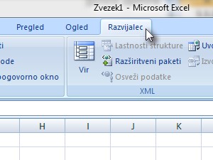 ![]() Zgoraj kliknite zavihek Razvijalec.