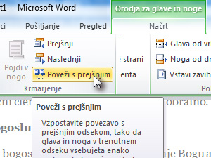 ![]() V orodni vrstici kliknite na možnost Poveži s prejšnjim ... |