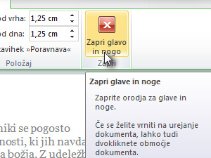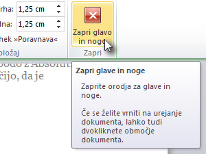 ![]() Kliknite na Zapri glavo in nogo, da zaprete urejanje noge s številčenjem Lahko tudi z miško kliknete na dokument dvakrat, da ga zaprete. |