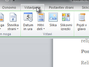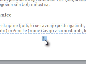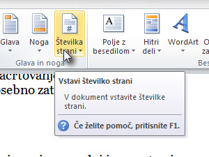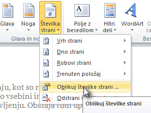 ![]() Vse strani se bodo v Wordu oštevilčile. Označite številko 3. |