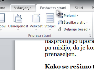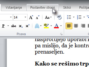 ![]() Nato kliknite na zavihek Postavitev strani. |