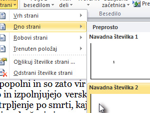 ![]() ..., Dno strani in izberite poljubno postavitev oštevilčenja. Jaz sem izbral Navadna številka 2, ki se nahaja na sredini strani. |