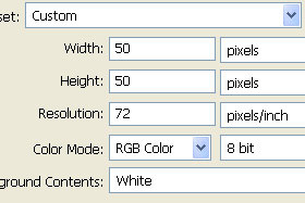 Ustvarite dokument v velikosti 50 * 50 pik.