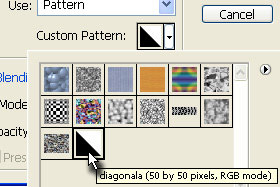 Izberite vzorec, ki ste ga prej ustvarili in kliknite na gumb OK. Jaz sem označil vzorec, ki sem ga prej imenoval diagonala. |