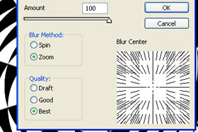 Amount določite 100, Blur Method Zoom in Quality Best. Kliknite na gumb OK. |